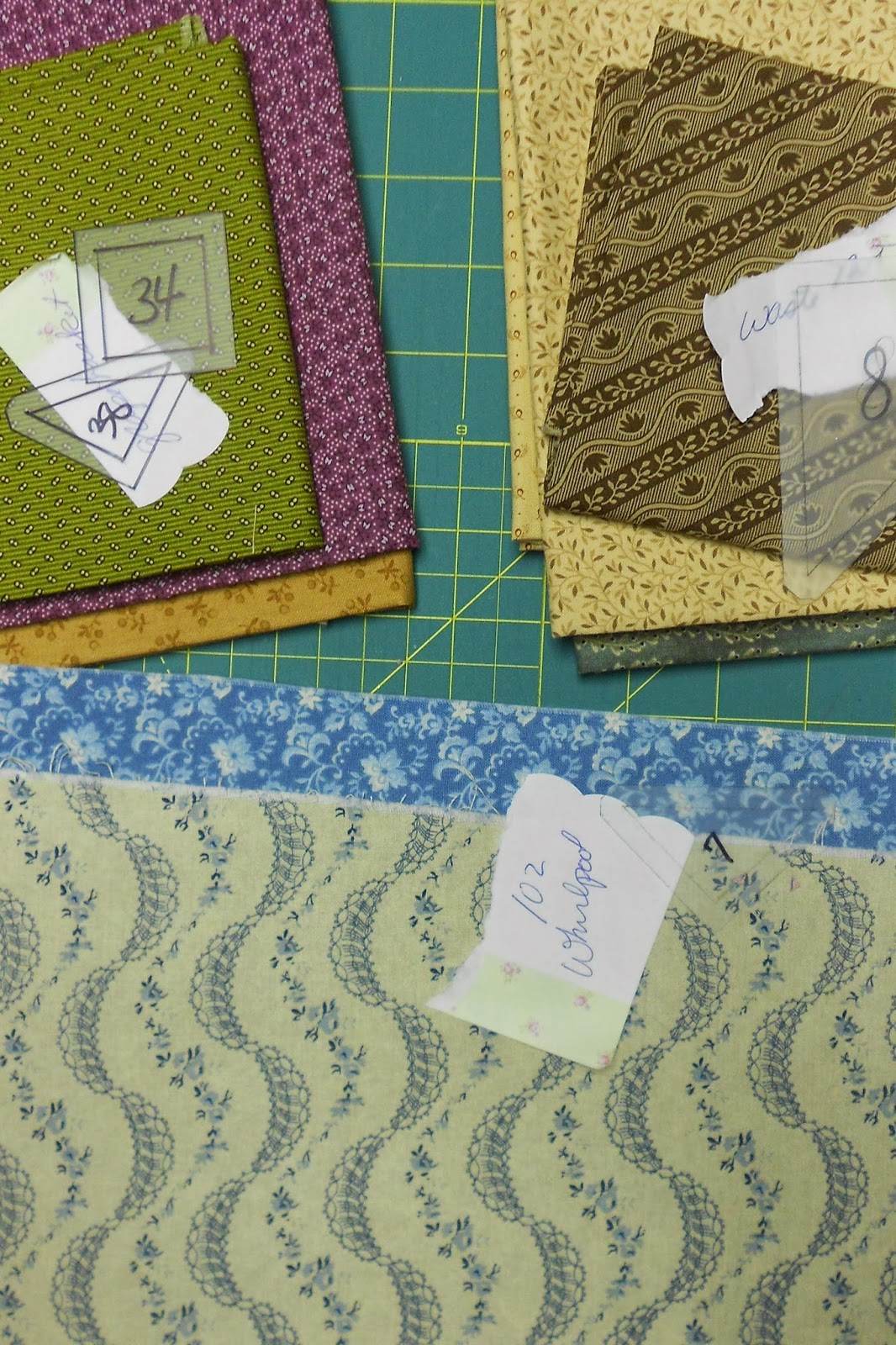 I have also cut out the pieces from the blue fabrics and have the templates ready for the the others so I hope to have five blocks finished by the end of this week. The key word is hope!